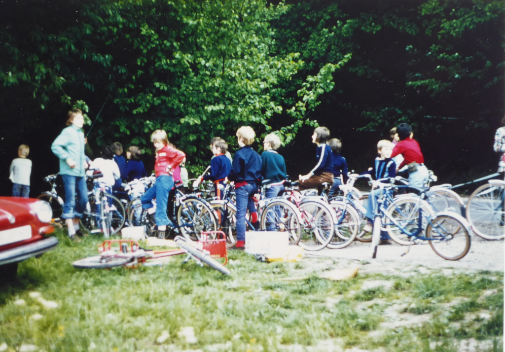 Das alles fünf mal! Vor allem einige der jüngeren Teilnehmer waren angesichts der bewältigten Höhenmeter hinterher ziemlich platt. Man sieht es auch auf der nachstehenden Ergebnisliste an den Ausfallzahlen in dieser Klasse. Erstmals erfolgte die Klasseneinteilung in bis und über 12 Jahre – die vorherige Einteilung in mit und ohne Gangschaltung wurde aufgegeben. – Eltern waren übrigens praktisch nie beim Trial mit dabei. Die Teilnehmer waren ja alle auf ihren Fahrrädern zum Trial gekommen.