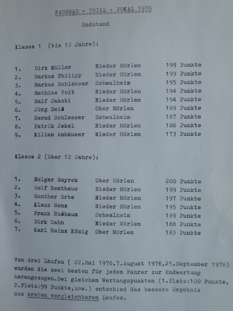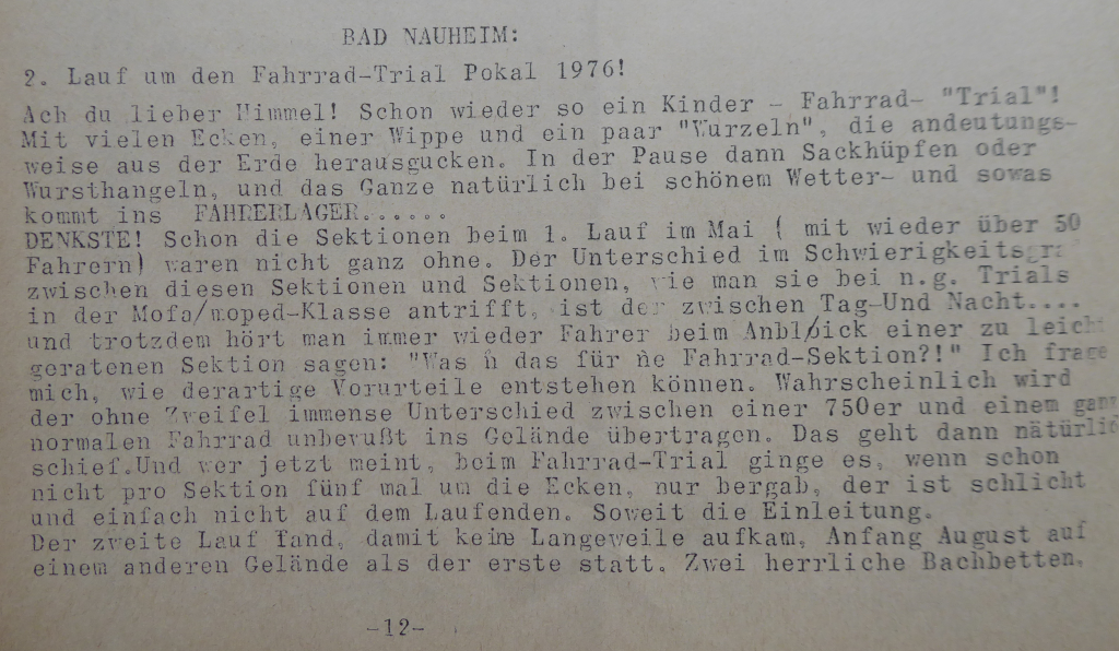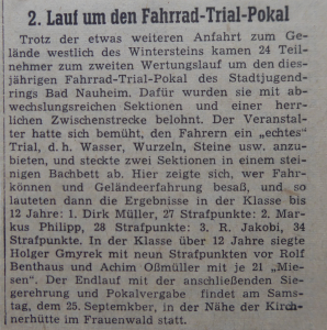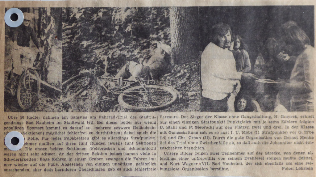 1976 machte ich in Bad Nauheim einen Fahrrad-Trial-Pokalwettbewerb mit drei Läufen, die alle an verschiedenen Orten stattfanden.
