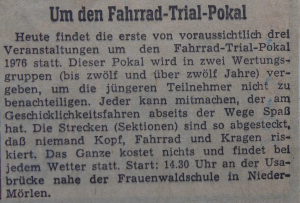 5. Fahrrad-Trial am 22.05.1976 = 1. Wertungslauf um den Fahrrad-Trial Pokal
