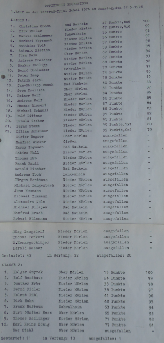 1976 machte ich in Bad Nauheim einen Fahrrad-Trial-Pokalwettbewerb mit drei Läufen, die alle an verschiedenen Orten stattfanden.
